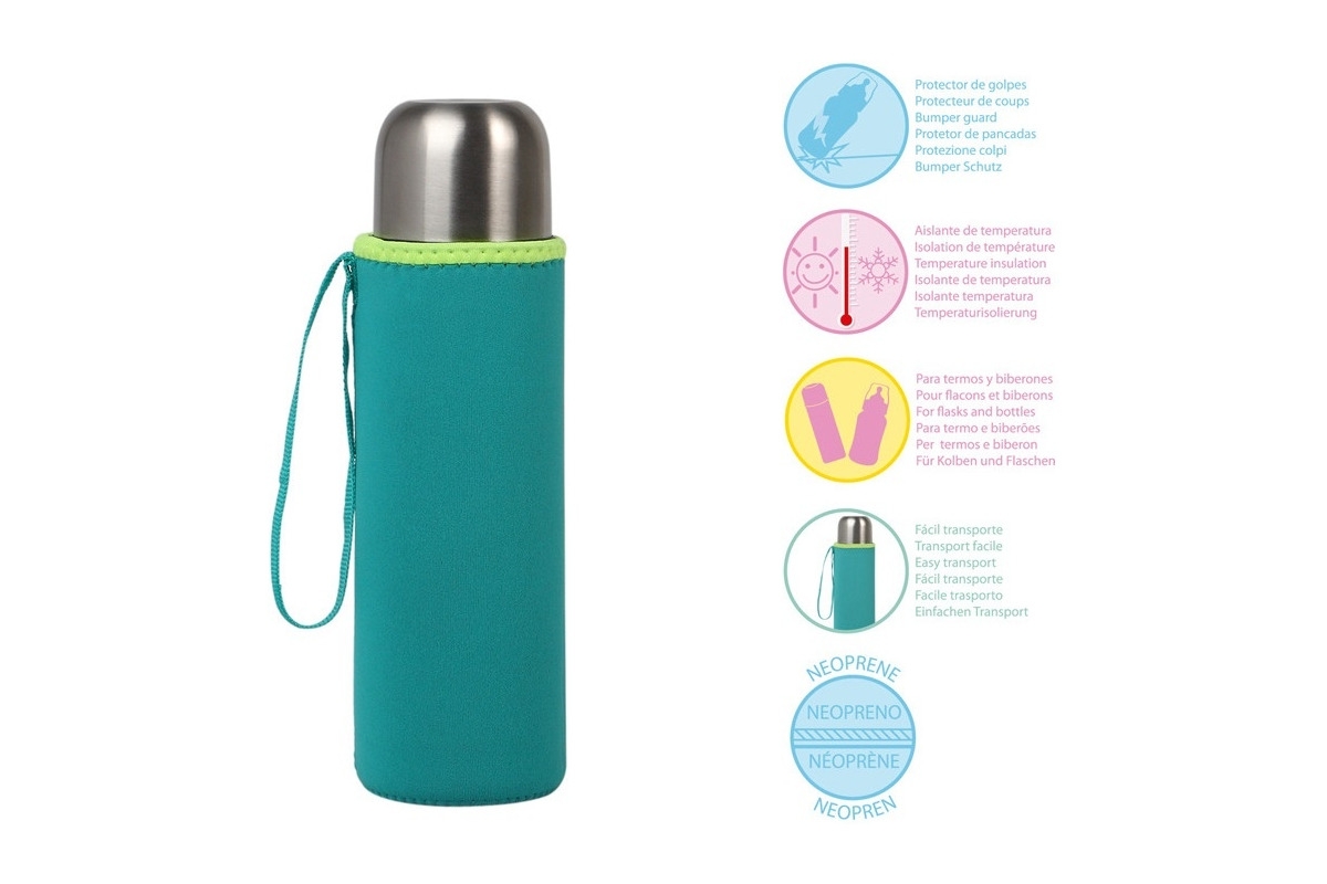 Stanowi zabezpieczenie dla butelek, termosów bądź bidonów.