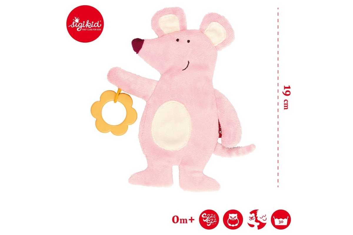 Kolekcja Przytulaczek komforter to seria płaskich przytulaczków, stworzonych do wygodnego chwytania przez małe rączki, ugniatania, przytulania, komfortowego snu, a także ssania i gryzienia, bezpiecznego dla delikatnych dziąsełek. Przyjemne w dotyku tkaniny i mięciutkie supełki na rogach dodatkowo wspierają sensoryczny rozwój maluszków. Wszystkie pluszowe zabawki sigikid z kolekcji Przytulaczek komforter są bezpieczne dla dzieci już od pierwszych dni życia.