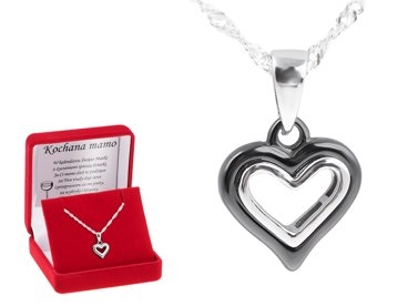 Eleganckie połączenie czarnej ceramiki ze srebrem pr. 925 w kształcie serca z indywidualną dedykacją to idealny prezent dla bliskiej osoby.