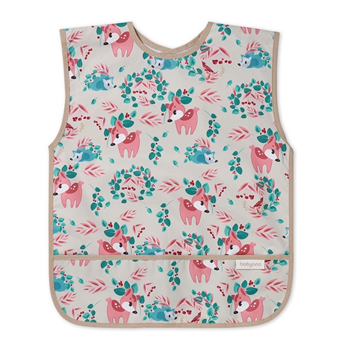 OPIS: Fartuszek dla dzieci to praktyczne i wielofunkcyjne rozwiązanie, które chroni ubrania malucha podczas posiłków, zabaw plastycznych i innych kreatywnych aktywności. Fartuszek jest wodoodporny i łatwy w utrzymaniu czystości, a więc przyda się podczas nauki samodzielnego jedzenia. Możesz regulować zapięcie śliniaka i bez problemu dopasować je do obwodu szyi malucha. Jest idealnym wyborem zarówno w domu, jak i w przedszkolu. CECHY: CHRONI PRZED ZABRUDZENIEM Fartuszek zabezpieczy ubranie malucha przed plamami. Sprawdzi się podczas codziennych posiłków, nauki jedzenia, a także zabawy i zajęć plastycznych. ZAPIĘCIE NA RZEP Masz pewność, że maluch będzie czuć się w fartuszku komfortowo. Dzięki zapięciu na rzep, które możesz regulować, nic nie będzie uwierało szyi dziecka. KIESZONKA NA OKRUSZKI Praktyczne rozwiązania sprawdzają się najlepiej – kieszonka na okruszki skutecznie zapobiega bałaganowi i chroni ubranko przed zabrudzeniami. JEST WODOODPORNY Fartuszek zabezpieczy ubranie malucha przed plamami. Sprawdzi się podczas codziennych posiłków, nauki jedzenia, a także zabawy i zajęć plastycznych. INFORMACJE DOTYCZĄCE BEZPIECZEŃSTWA Usuń wszystkie zabezpieczenia, które mogą być niebezpieczne dla dziecka. Wyrób należy sprawdzić przed każdym użyciem. W przypadku pierwszych oznak zniszczenia lub zużycia – wyrzucić. Zawsze używać pod nadzorem osoby dorosłej. Produkt nie jest zabawką. Zalecamy zachować opakowanie w celach informacyjnych. Opakowanie należy przechowywać w miejscu niedostępnym dla dzieci. Dane techniczne Materiał: 100% poliester, pokryty powłoką PU Wymiar produktu: 34 x 42 cm Wymiar opakowania: 37 x 52 cm Wiek dziecka: 2-4y Fartuszek jest dostępny w dwóch rozmiarach: dla dzieci od 6 miesięcy do 2 lat oraz od 2 lat do 4 lat –chodzących do żłobka i przedszkola. Wymiary wymiary opakowania 0