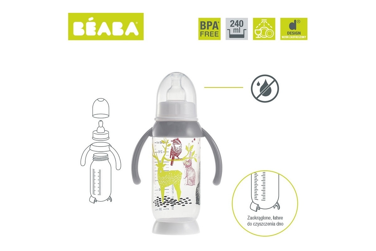 Zdejmowany uchwyt pasuje do wszystkich butelek BEABA.
