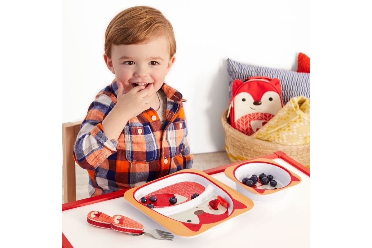 Talerzyk posiada dwie przegródki na jedzenie.