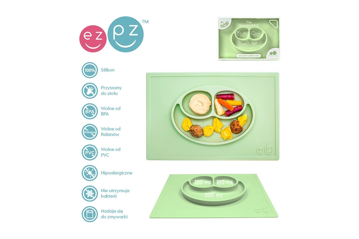 ZIELONY TALERZYK z podkładką 2w1 Happy Mat Pastel