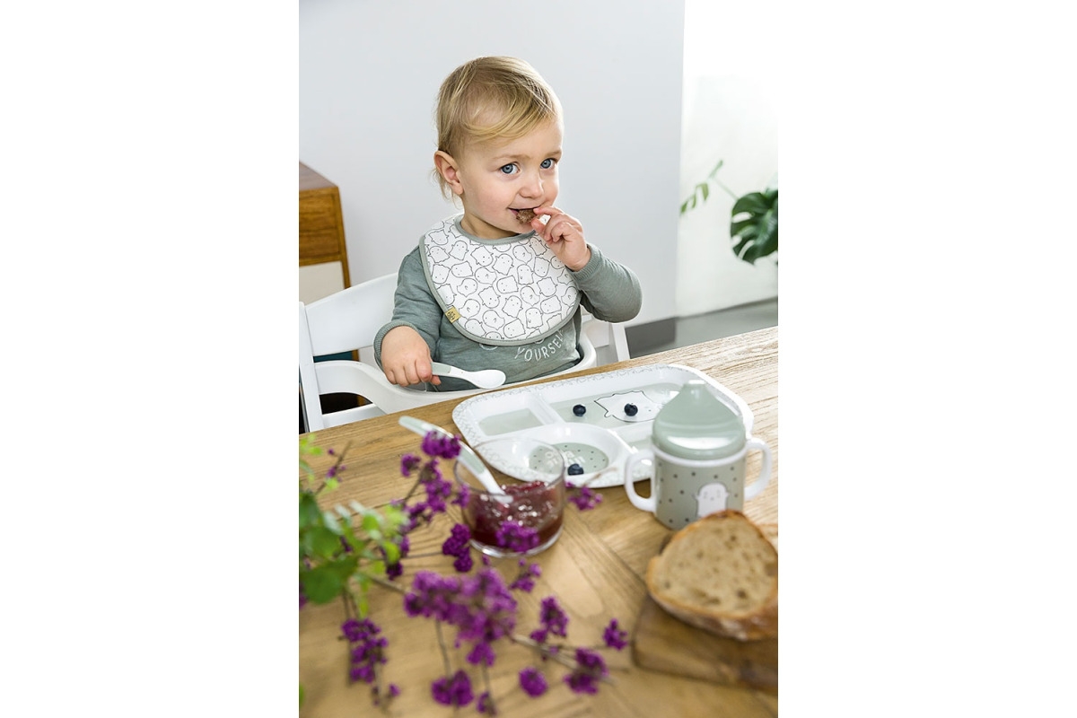Booooo! Przerażająco słodka kolekcja Little Spookies zachwyci małych smakoszy. Urocze duszki zdobią naczynia, śliniaki i muślinowe kocyki dla dzieci. Są dostępne w dwóch pastelowych odcieniach oliwki i brzoskwini. Z takimi przyjaciółmi wszystkie codzienne czynności są o wiele przyjemniejsze: czy to posiłek, czy popołudniowa drzemka.