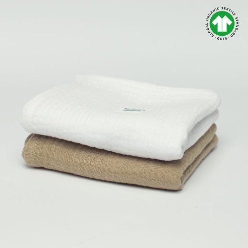 Komplet 2x pieluszka muślinowa GOTS 50×50 biała – beżowa