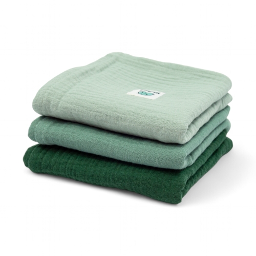 Pieluszki muślinowe wielopak | 3 szt | 50×50 cm | miętowy – eukaliptus – butelkowa zieleń