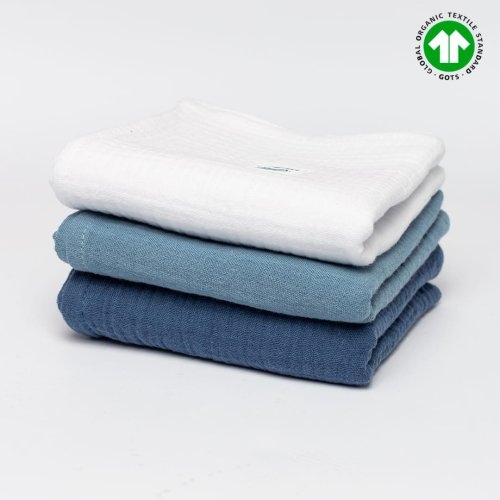 Pieluszki muślinowe zestaw 50×50 GOTS biały – jeans – granatowy
