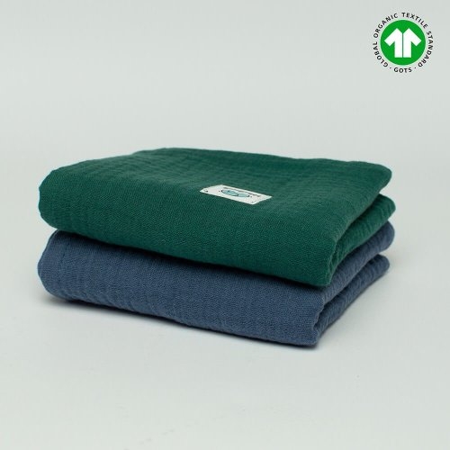 Zestaw 2x pieluszka z muślinu organicznego GOTS 50×50 butelkowa zieleń – granatowy