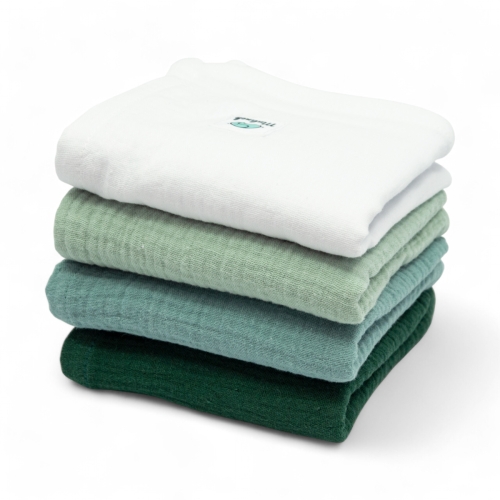 Zestaw 4 pieluszek muślinowych | 50×50 cm | 4 szt | biały – miętowy – eukaliptus – butelkowa zieleń