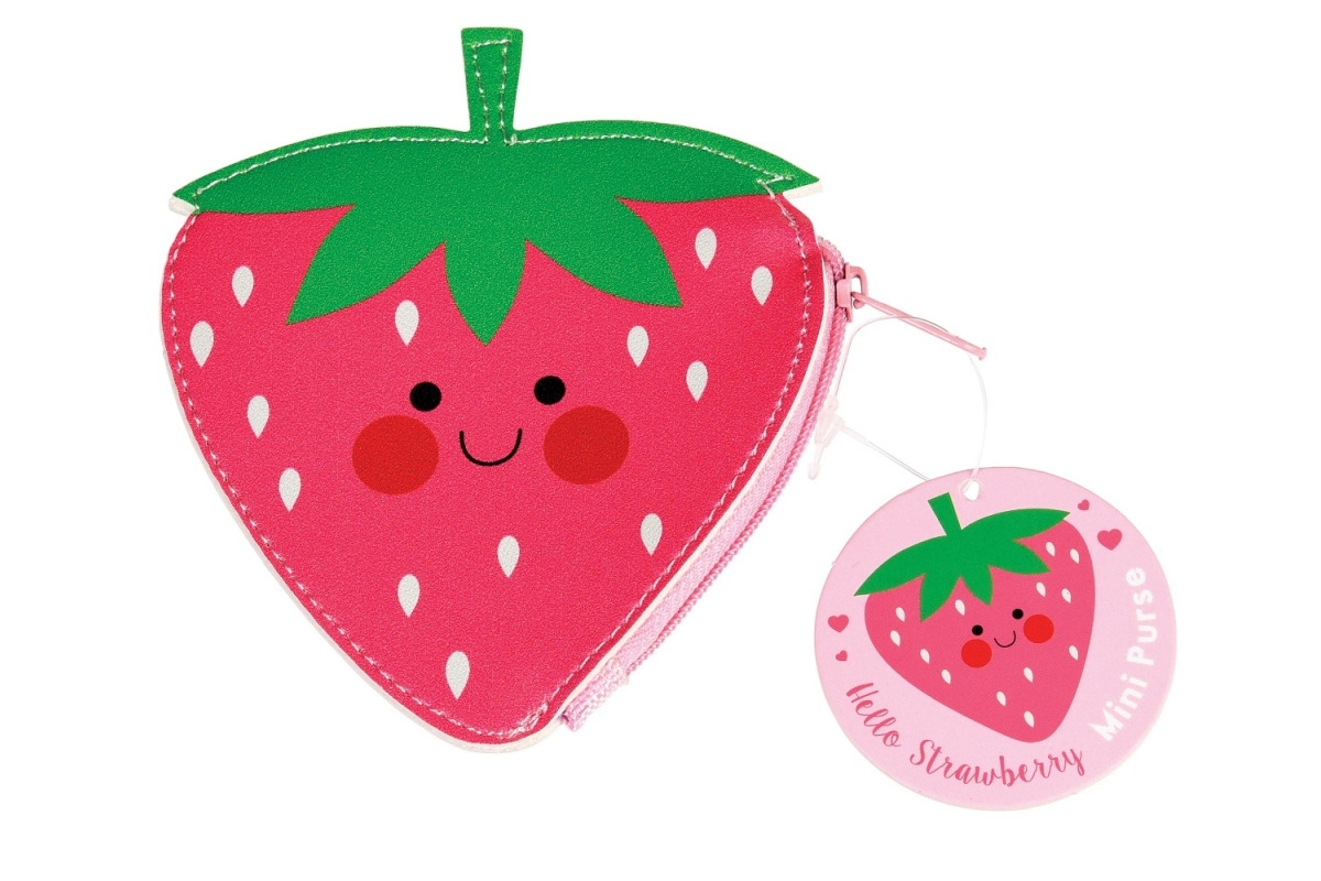 Portfelik z motywem uroczej truskawki zapinany jest na suwak.