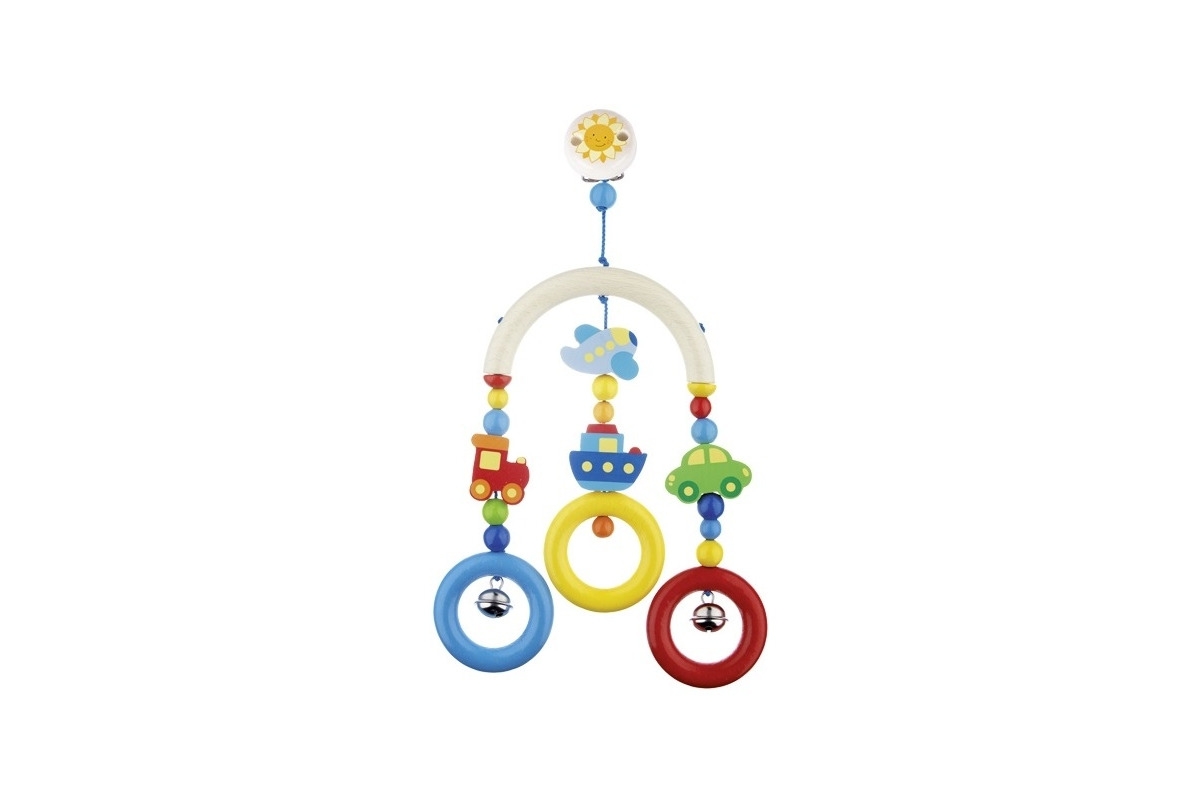 posiada 3 kółeczka z kolorową kuleczką oraz dwoma dzwoneczkami.