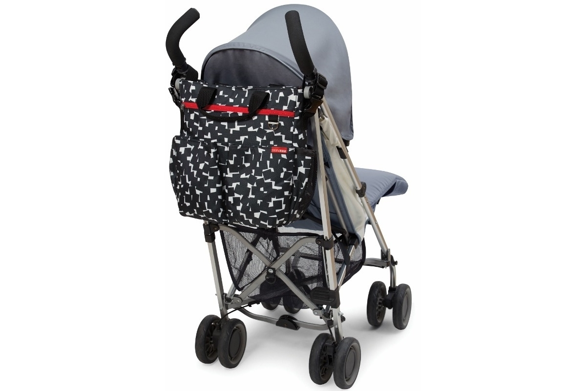 Dzięki opatentowanym pasom, można ją przymocować do rączek dowolnego modelu wózka, jak i nosić na ramieniu.