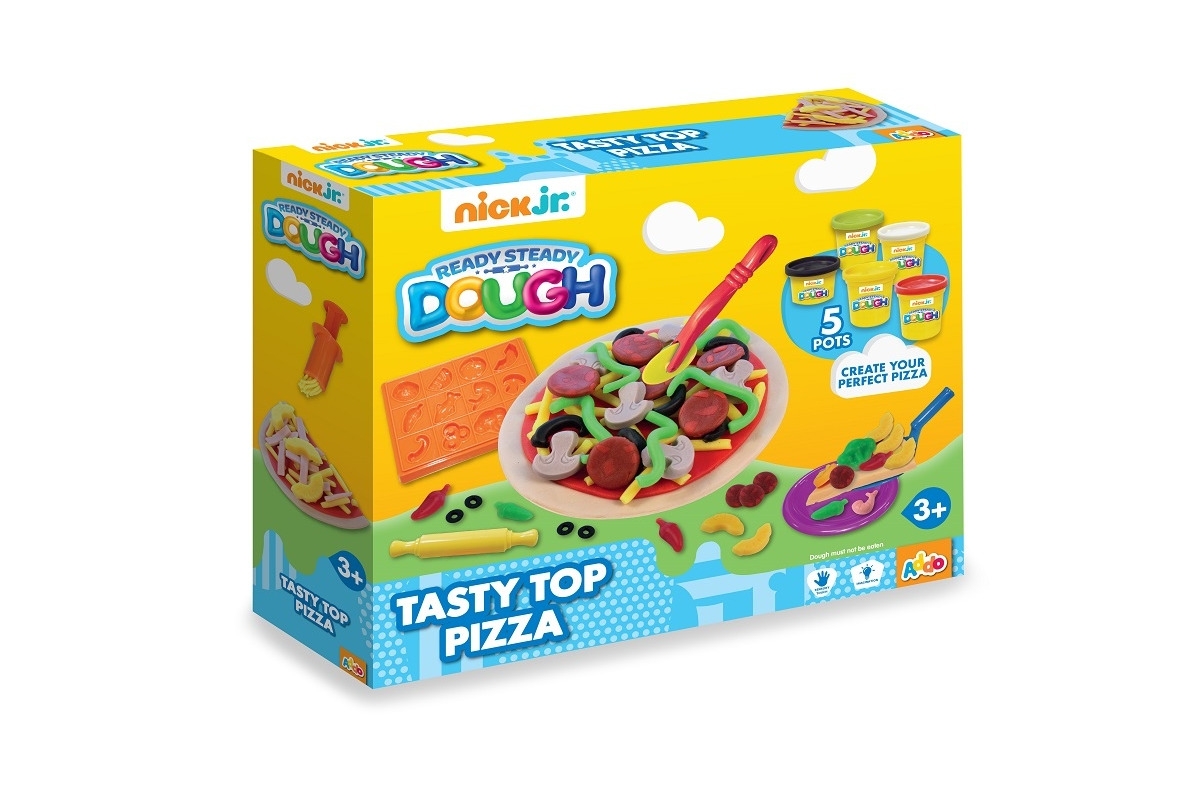 – 4 kubki masy plastycznej po 56g każdy (żółty, zielony, czerwony, biały),