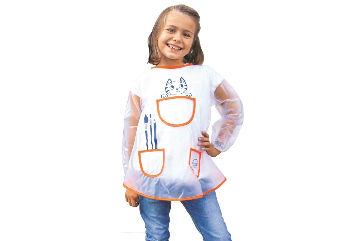 Fartuszek jest foliowy, zapinany na karku na rzep.