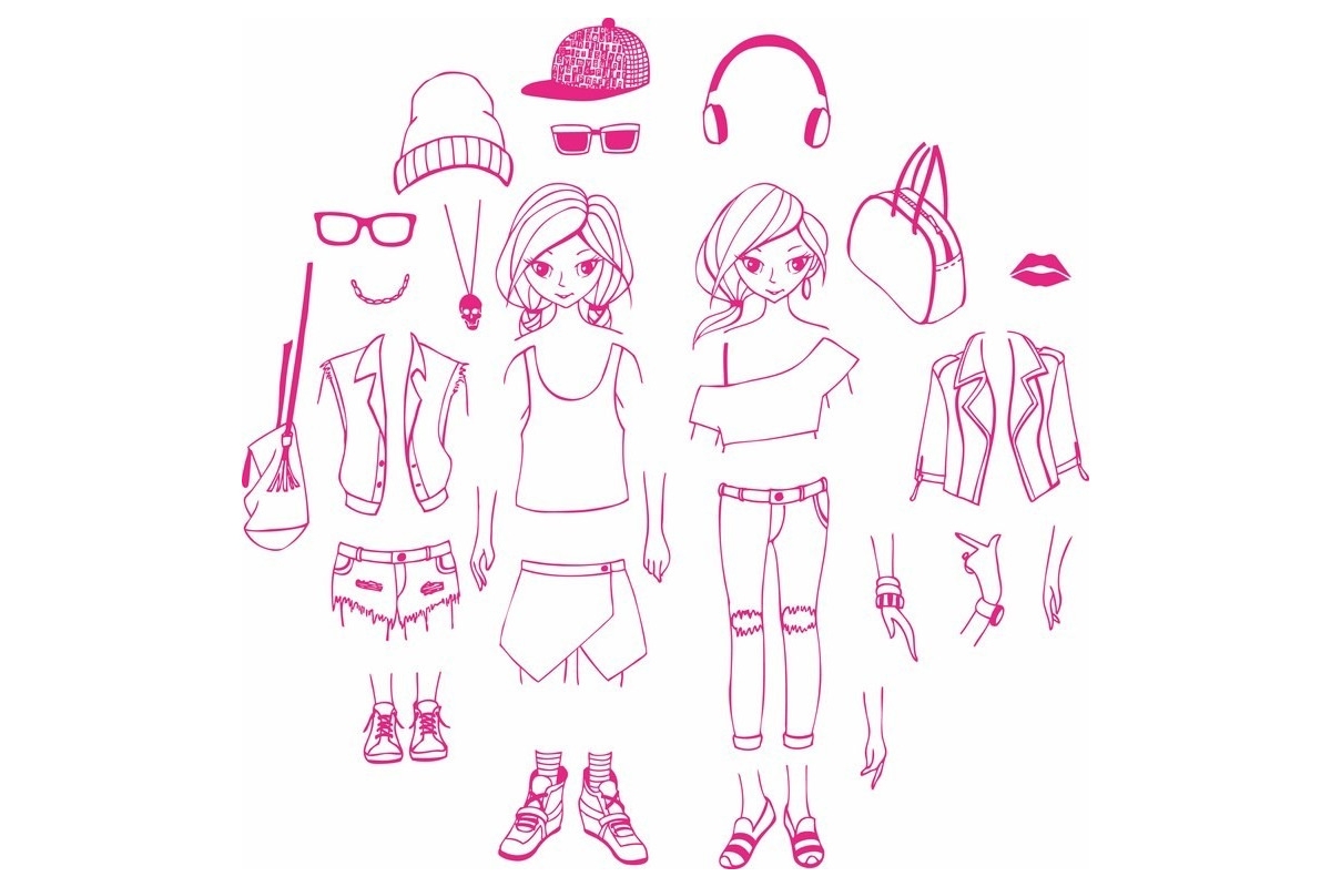 – 28 stempli (części ciała, elementy ubioru, dodatki) oraz 1 pojemniczek z tuszem.