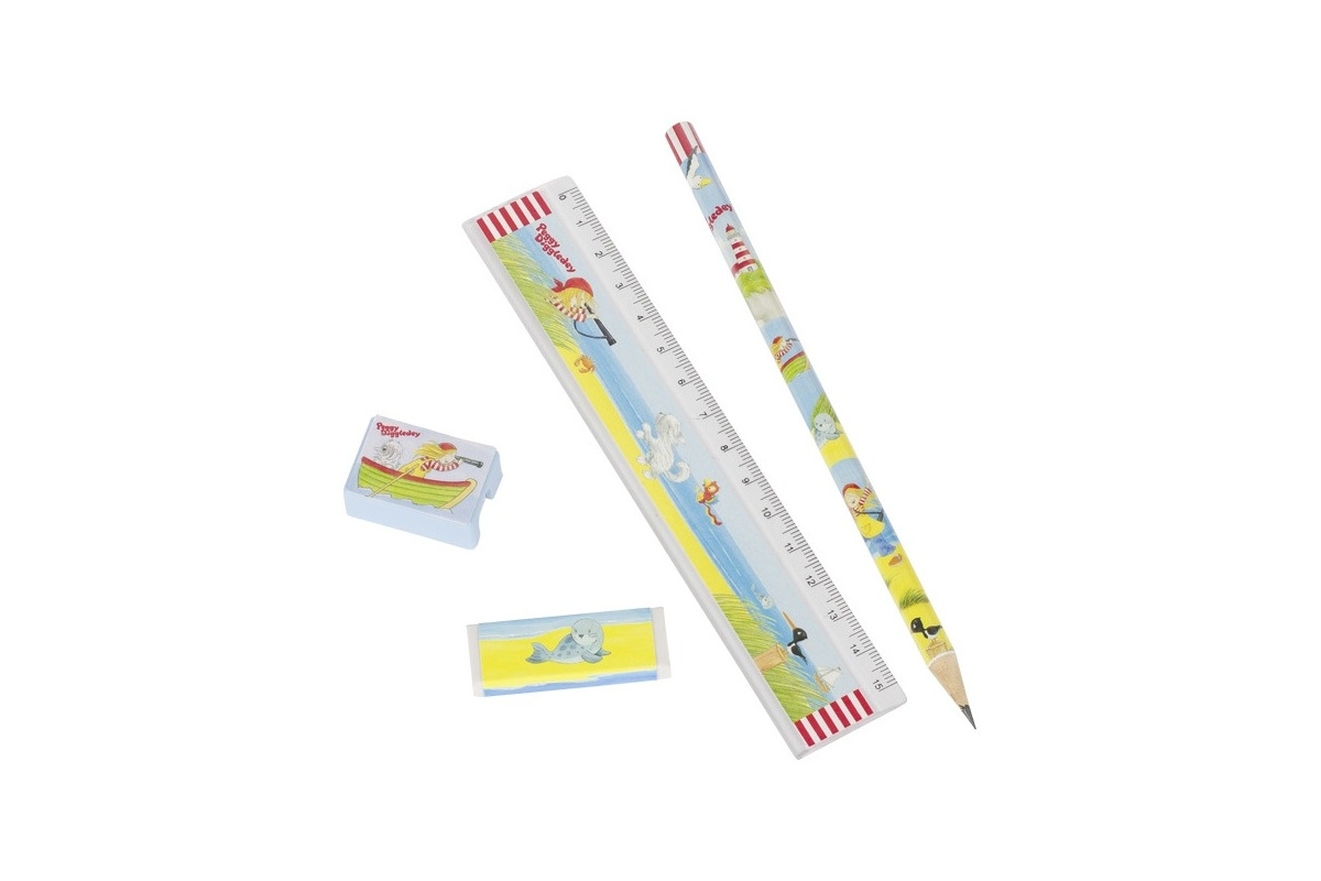 ZESTAW ZAWIERA: linijkę, ołówek, temperówkę, gumkę do mazania.