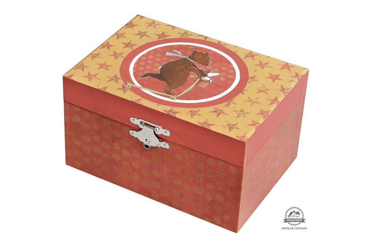 Z zewnątrz pięknie zdobiona, w środku oprócz lusterka i kręcącego się misia,