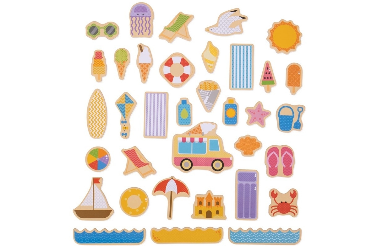 – 35 szt. magnesów z wakacyjnymi motywami,