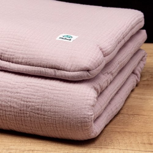 Naturalny i oddychający zestaw pościeli wykonany z przyjemnego w dotyku i delikatnego muślinu. Sprawi, że sen dziecka będzie trwał dłużej. Idealnie układa się w łóżeczku niemowlęcym, nie wystaje poza jego obręb. Komplet przyda się w domu jak i do wózka dziecięcego podczas spacerów. Kołderka i poduszka są uszyte z najwyższej jakości bawełny organicznej, posiadającej standard GOTS. Dlatego pościel jest wyjątkowo bezpieczna dla skóry dziecka, nie powoduje alergii i podrażnień skóry. Bawełna pozwala skórze oddychać, odprowadza nadmiar wilgoci i przyjemnie grzeje. Wewnątrz kołderki wszyliśmy niealergizującą włókninę silikonową, która nada Twojemu dziecku właściwy komfort cieplny. W komplecie znajduje się przyjemną, wygodną, dwustronną poduszkę. Posiada optymalną, gramaturę z włókniny silikonowej. Wymiary kompletu: kołderka 75×100 cm, poduszka: 30×40 cm. Zestaw uszyto w lokalnej, polskiej szwalni. Podstawowe cechy kompletu pościeli muślinowej marki Mulinek Wymiary 75×100 cm – rozmiar pościeli 30×40 cm – rozmiar poduszki Materiał 100% bawełna organiczna Wypełnienie włóknina silikonowa (owata silikonowa) Standard GOTS najwyższa jakość, standard GOTS Bezpieczne płatności Zabezpieczone transakcje online Bezpieczne zakupy Zwrot zakupów do 30 dni Darmowa dostawa od 250 zł Na terenie całej Polski (kurier) Pościel dziecięca muślinowa z wypełnieniem dwustronna pudrowy różowy kolekcja Pościel muślinowa wymiary kołderka: szerokość: 75 cm, długość: 100 cm (+/- 2 cm) poduszka: szerokość: 30 cm, długość: 40 cm (+/- 2 cm), grubość: 4 cm (+/- 5 mm) wiek niemowlę – małe dziecko 6-24 mcPościel dziecięca o rozmiarze 75 x 100 centymetrów jest zazwyczaj przeznaczona dla niemowląt i małych dzieci w przedziale wieku 6 miesięcy a około 3 lat.Wiek ten może się nieco różnić w zależności od rozwoju i wzrostu dziecka. skład i gramatura tkaniny 100% bawełna organiczna, muślin double gauze (dwuwarstwowy), certyfikat jakości Oeko-Tex i GOTS130 -135 g/m2 skład i gramatura wypełnienia włóknina silikonowa (owata silikonowa), gatunek I, produkcja Polska, certyfikat jakości Oeko-Tex: kołderka: 150 – 200 g/m2 poduszka: 400 g/m2 kolor pudrowy róż, różowy (eng. powder pink, pink, rose) zastosowanie do wózka, do spacerówki, do kołyski, do łóżeczka, do kosza Mojżesza, do gondoli, do fotelika samochodowego, przykrycie w nosidełku, do chrztu płeć dla chłopca lub dziewczynki producent Mulinek Produkt polski, ręcznie wykonany