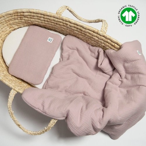 Pościel muślinowa z wypełnieniem zestaw 100% bawełna organiczna | 60×70 cm | pudrowy róż
