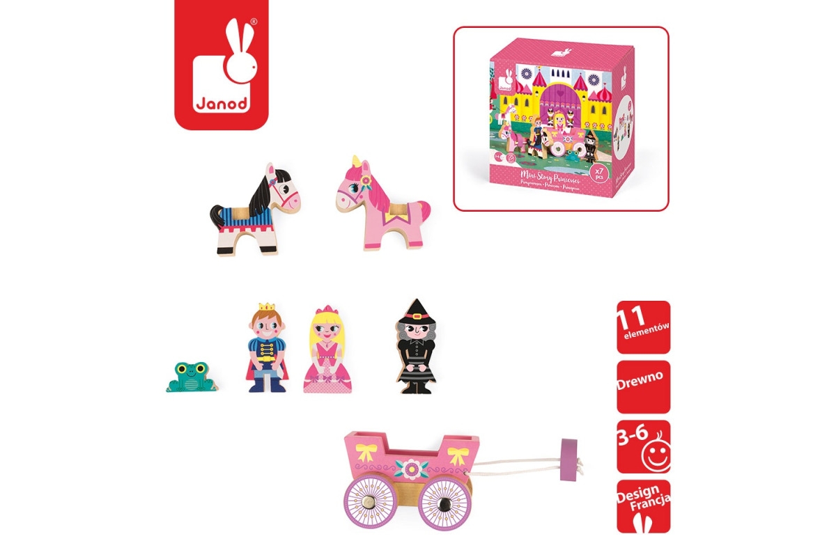Kolekcja STORY marki JANOD to ogromny wybór tematyczny drewnianych postaci, zwierząt, pojazdów i innych elementów,