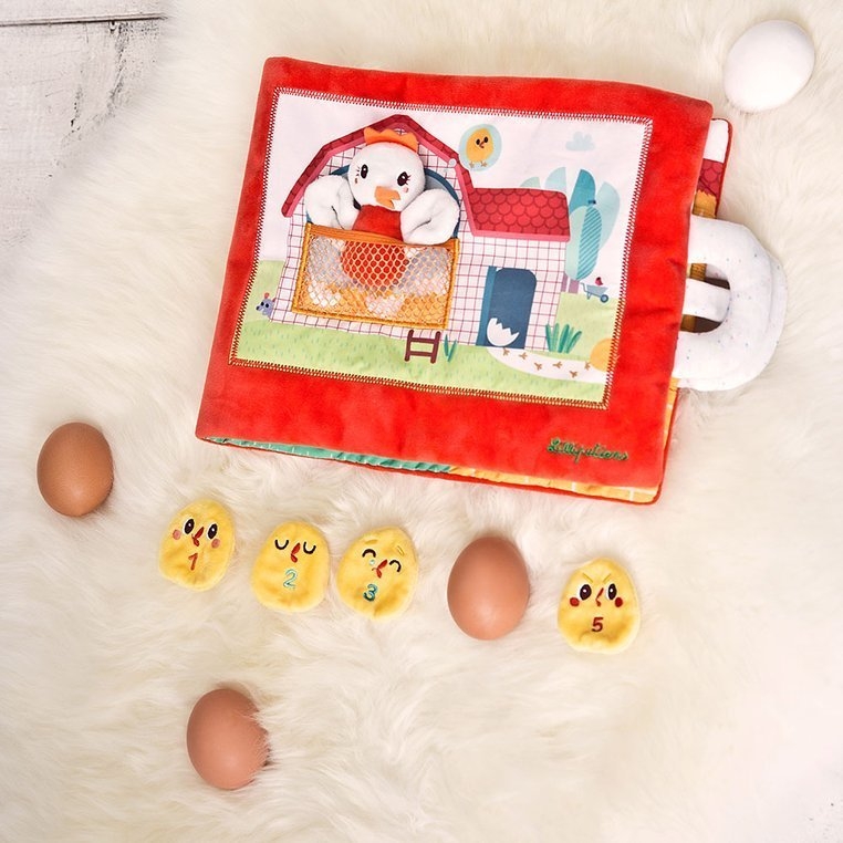 Na każdej ze stron znajduje się nieduża kieszonka-kryjówka małego kurczaczka: raz jest nią taczka, raz kamyk nad stawem, innym razem brama przy zagrodzie dla krów. W sumie w książeczce w różnych miejscach można schować 5 pisklaków – mini-przytulanek. Dołączona do zestawu kokoszka Paulette ma postać mini-przytulanki z otworami w skrzydłach, dzięki którym można ją sobie nałożyć na palce, żeby móc „łapać” odnalezione kurczątka. Każde z piskląt ma inną minę, wyrażającą emocję, którą dziecko może spróbować rozpoznać i nazwać, oraz numerek na brzuszku, odpowiadający numerkowi miejsca w kurniku na ostatniej stronie książeczki. Kolorowe obrazki doskonale nadają się do snucia opowieści i łatwo zapadają w pamięć.