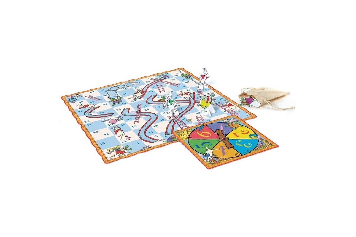 ZESTAW ZAWIERA: 4 pionki (2 żółwie i 2 zające), planszę oraz
