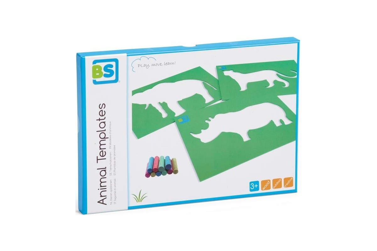 ZESTAW ZAWIERA: 3 drewniane szablony oraz 10 sztuk kredy.
