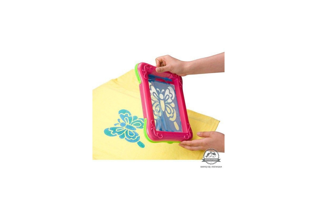 – 14 szablonów z wzorami, paski materiału, atrament w 4 kolorach, bandankę oraz instrukcję.