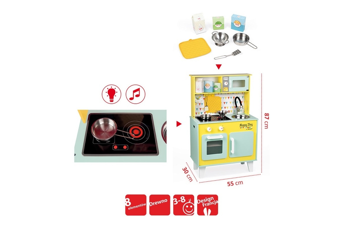 HAPPY DAY drewniana kuchnia z dźwiękiem i akcesoriami