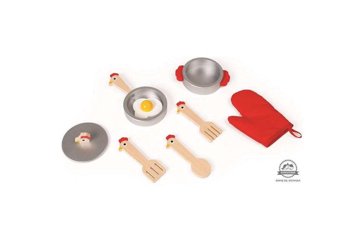 – garnek z przykrywką, patelnię z jajkiem sadzonym oraz rękawicę kuchenną.