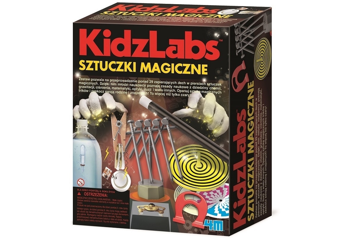 Zestaw nie zawiera wymaganych: elementów z domu potrzebnych do przeprowadzenia sztuczek magicznych.