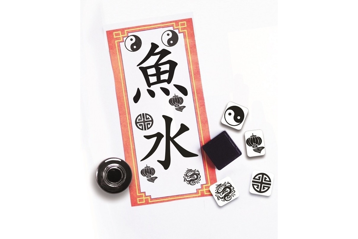– gąbeczka z czarnym tuszem do stempelków, 4 stempelki z chińskimi motywami