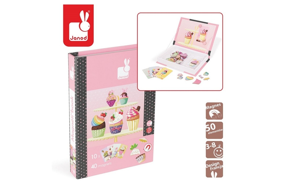 – 40 kolorowych magnesów z elementami babeczek,