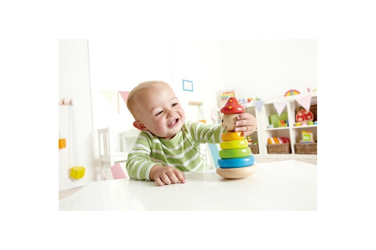 Zabawka uczy logicznego myślenia, ćwiczy koordynację wzrokowo-ruchową i motorykę paluszków.