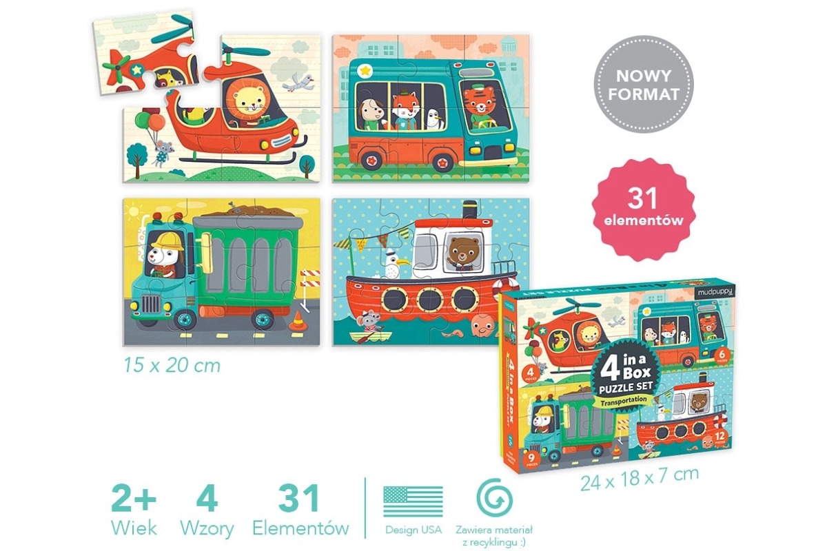 POJAZDY tekturowe pierwsze puzzle 4w1