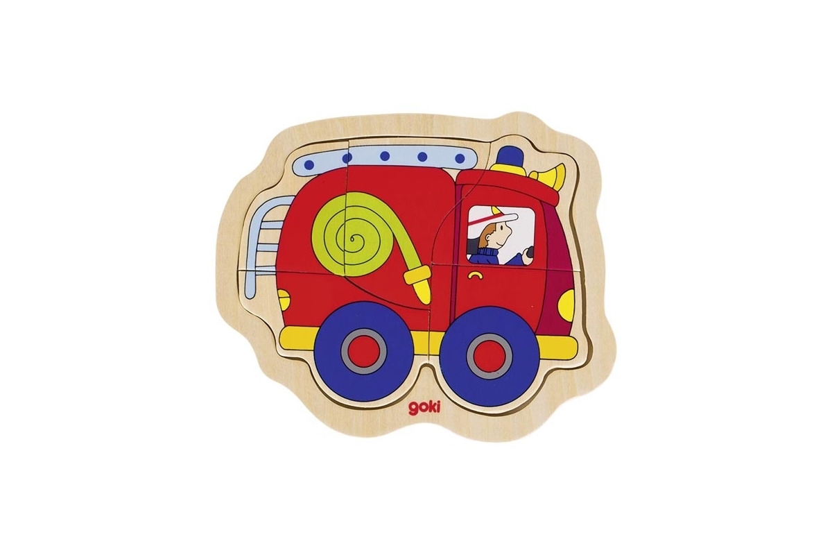 WÓZ STRAŻACKI drewniane pierwsze puzzle 5 el.