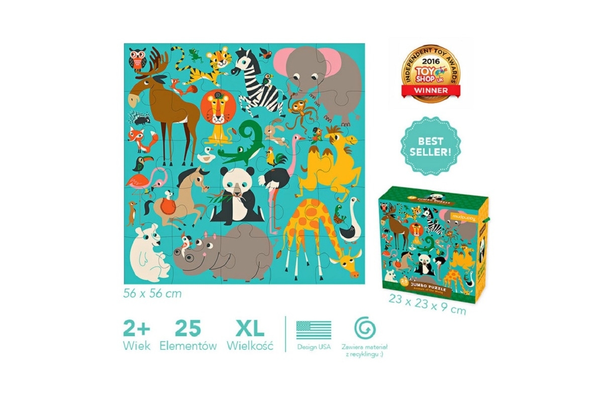 Duże puzzle podłogowe Zwierzęta świata przedstawiają