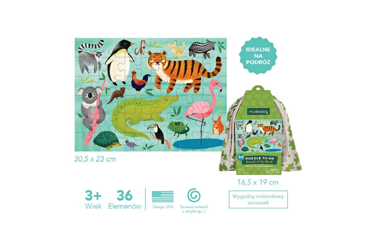ZWIERZĘTA ŚWIATA puzzle podróżne w woreczku 36 el.