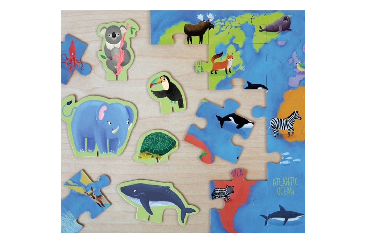 Puzzle przedstawiające zwierzęta świata posłużą również do nauki.