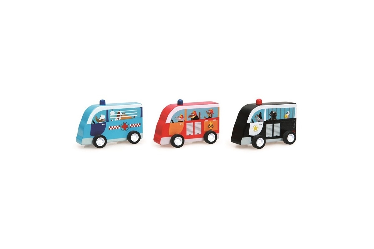 – 3 pojazdy: straż pożarną, karetkę pogotowia, policję.