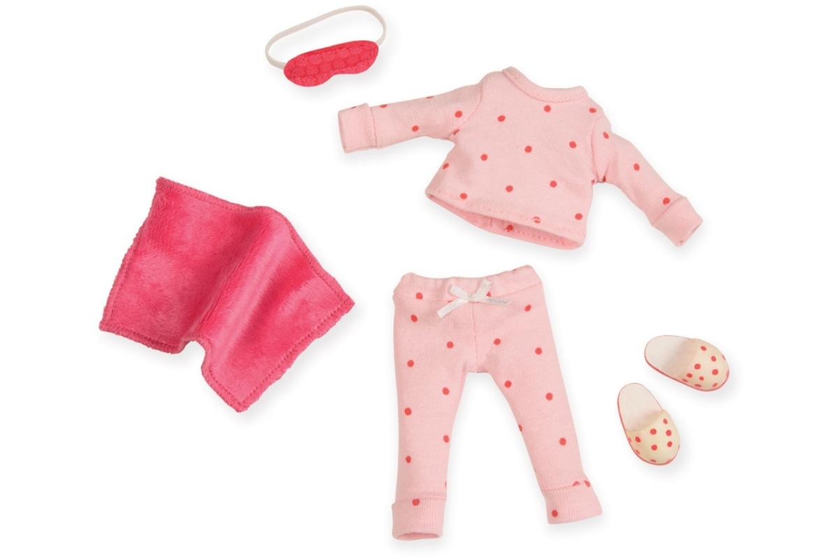 – dwuczęściową piżamę w grochy, maskę/opaskę na oczy – do spania