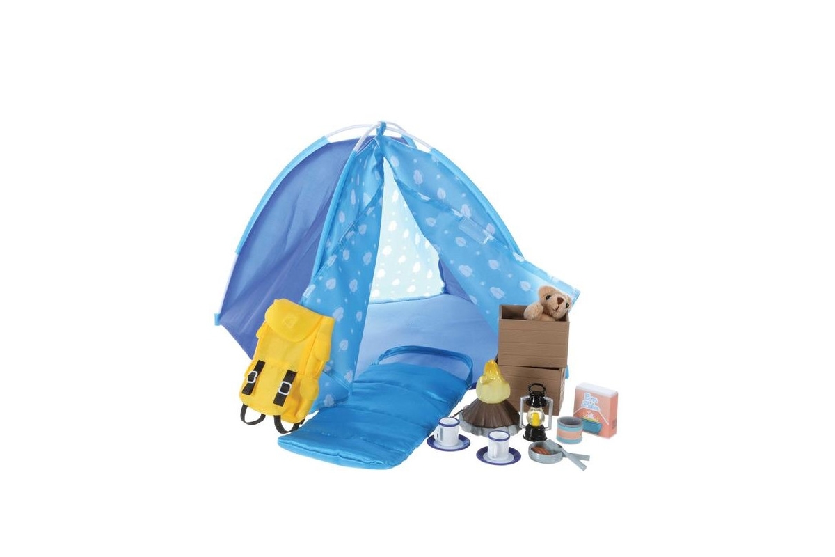 – namiot, lampę, dwie skrzynki, misia przytulankę, śpiwór, plecak, ognisko,