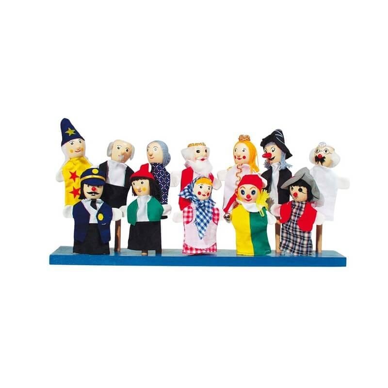 Zestaw zawiera dwanaście kolorowych pacynek na paluszek.