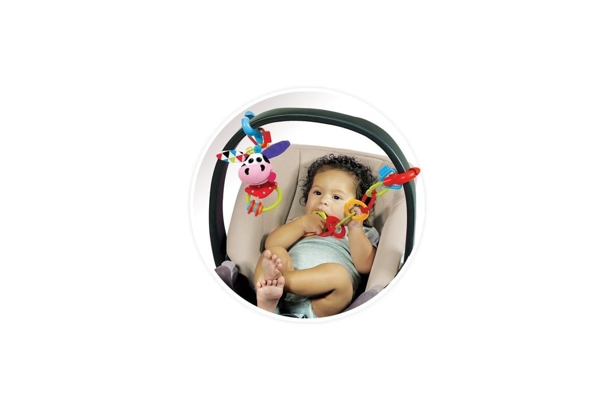 – grzechotkę krówkę, 10 kolorowych zaczepów, 2 klipsy