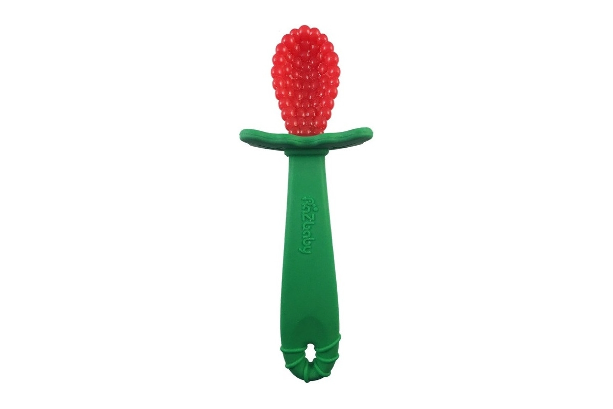 Delikatnie masuje i chłodzi miękkie dziąsła dziecka.