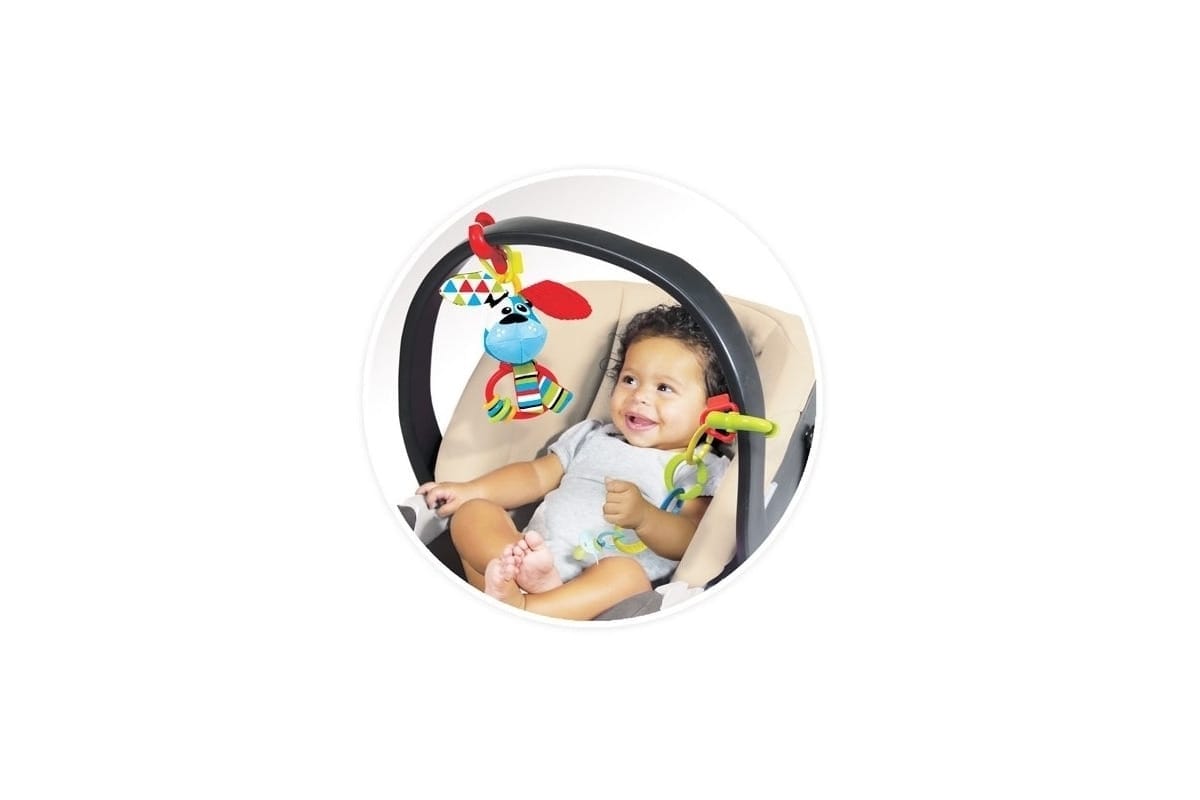 – grzechotkę z wizerunkiem pieska, 10 kolorowych zaczepów, 2 klipsy