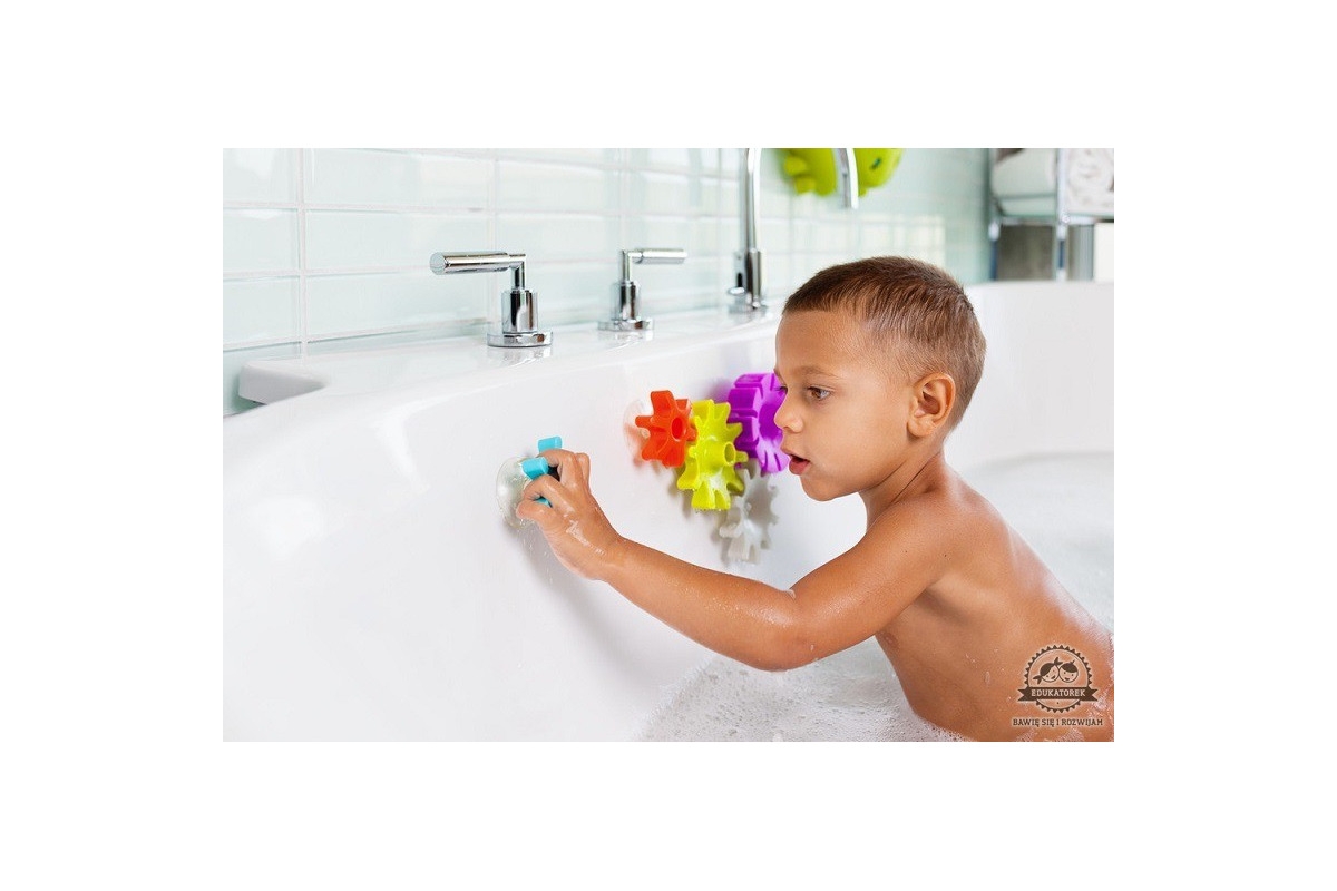 Koła zębate stanowią również świetne połączenie z zabawką do kąpieli Pipes Boon,