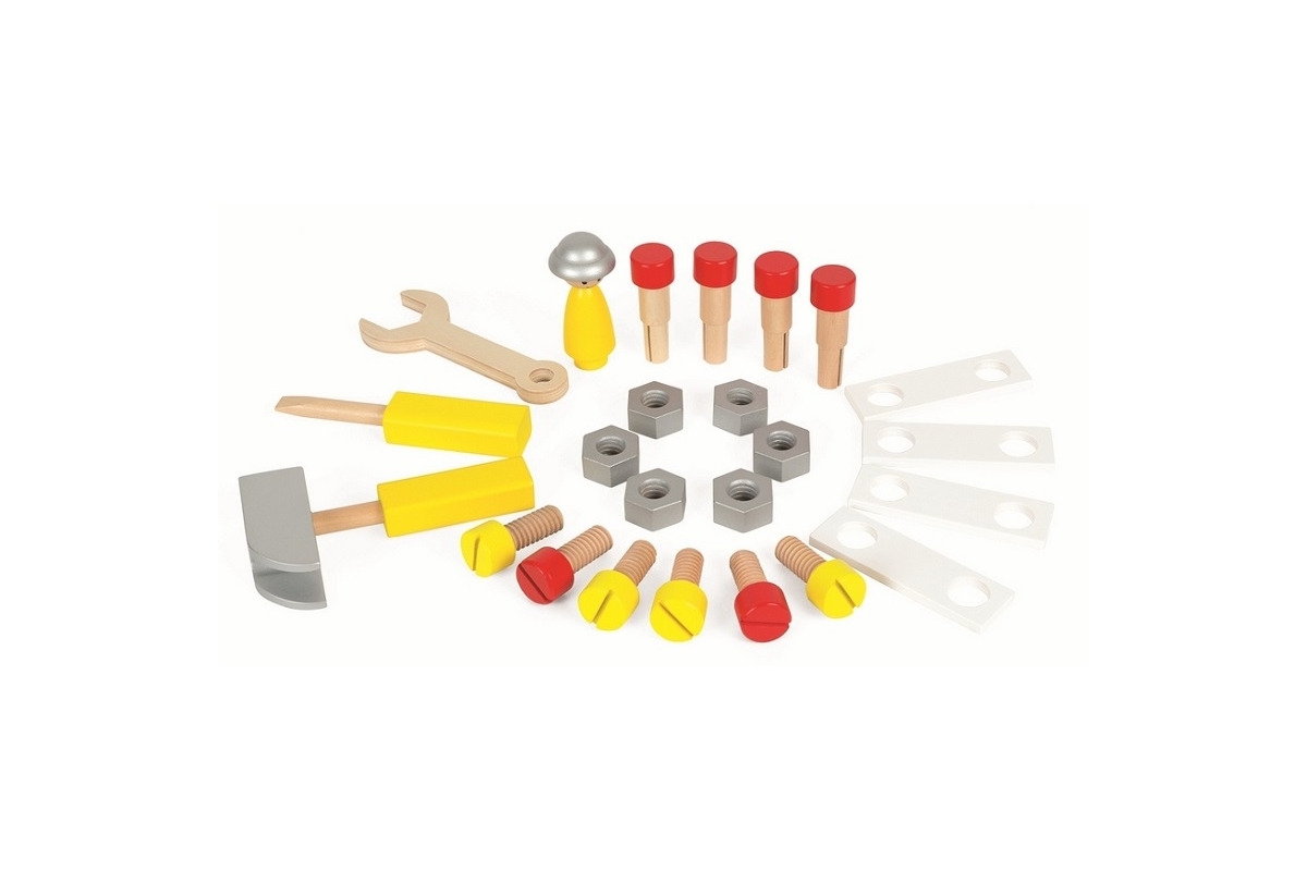 – śrubki, nakrętki, śrubokręt, klucz, młotek oraz ciężarówkę do pchania.