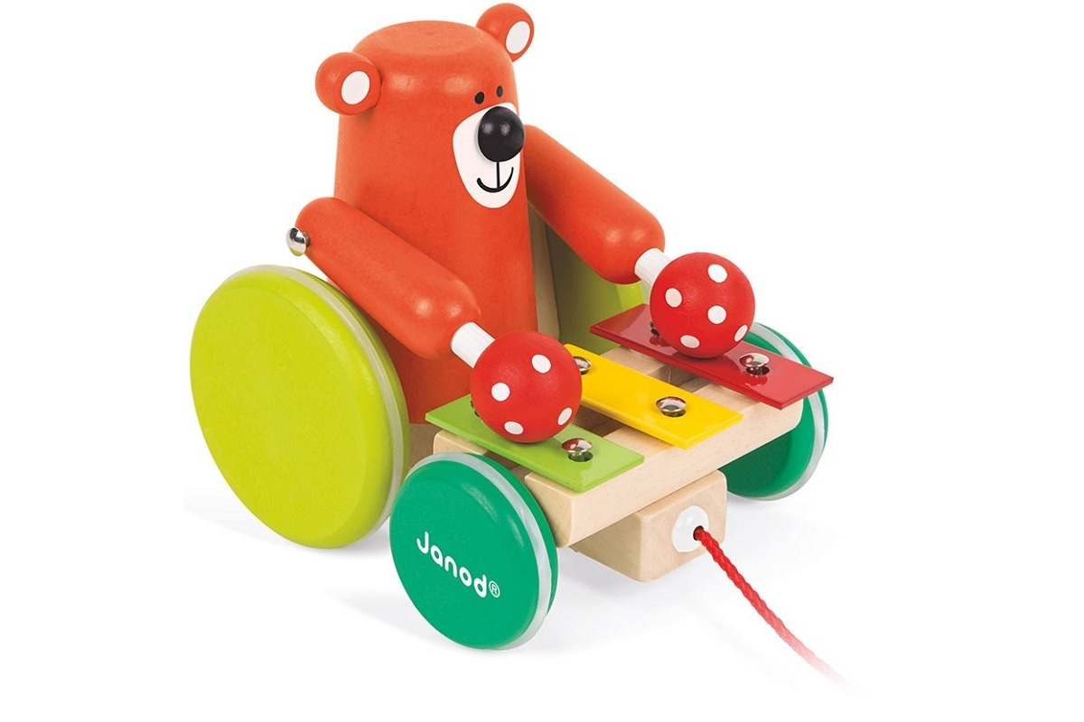 Para szeroko rozstawionych kółek zapewnia zabawce stabilność.